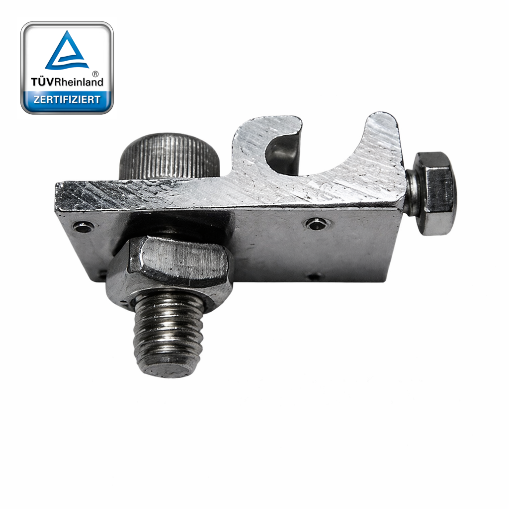 Die PV-Erdungsklemme stellt eine dauerhafte elektrische Verbindung zwischen Modulrahmen, Montageschiene und Erdungssystem her. Sie schützt die Anlage zuverlässig vor Überspannungen und Blitzeinflüssen und trägt wesentlich zur Betriebssicherheit der gesamten PV-Installation bei.