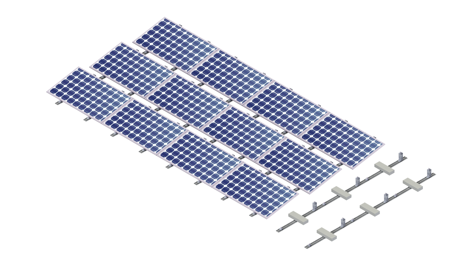 Das Montagesystem eignet sich ideal für Wohngebäude, Gewerbeimmobilien oder andere Flachdachstrukturen, bei denen Effizienz, Stabilität und einfache Installation im Vordergrund stehen.