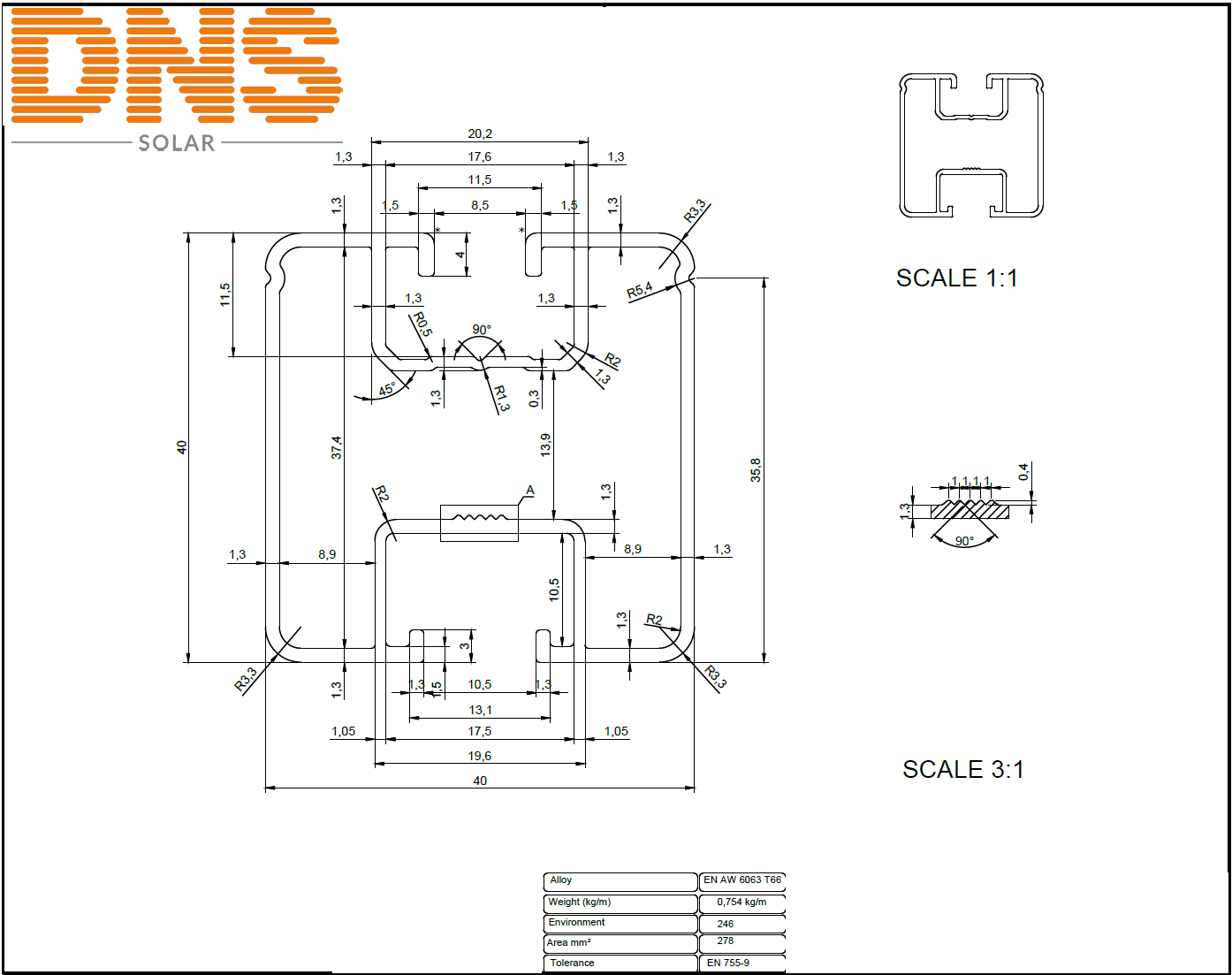 Das Profil ist für die Aufnahme von Modul- und Endklemmen, Nutensteinen sowie Dachhaken- oder Stockschraubenverbindungen ausgelegt und bietet eine zuverlässige Lastabtragung bei Wind- und Schneelasten.